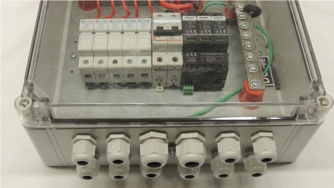 Large surges can immediately destroy equipment and can also melt conductors. Typical location for surge protection are at the ac output and dc input of inverter, and dc combiner boxes. The best surge protection is a well grounded system. SPD’s are connected in parallel with the circuit that is being protected so when the device fails, the circuit will be energized but will no longer be protected from surges.