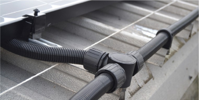 The cables shall be routed properly and fastened with clamps to avoid any damage to the cables. If the cables are not properly routed and the wires are left hanging, this may cause damage to cables because of rodents, squirrels and other pests or can cause hazard when people walk around the terrace.