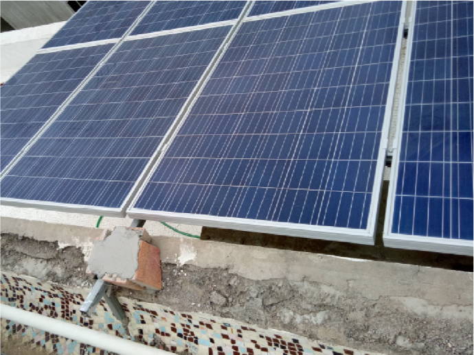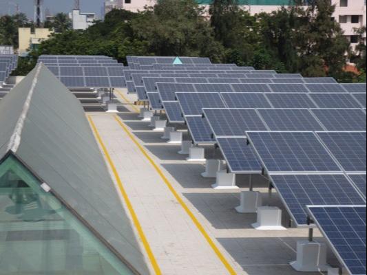 Check the tilting angle. The optimal tilt of the fixed PV module is approximately the degree of latitude of that location (facing South in India). However, it is an acceptable practice to install the PV modules at lower tilt angles (in the range of 10° to 15°) on flat roofs/ terraces for the following reasons: