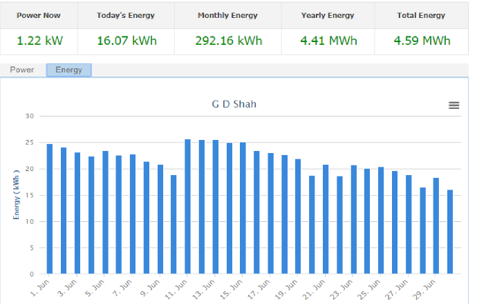 Figure below shows the SCADA image sample showing the energy generation of 5 kW installed capacity of the Rooftop PV System
